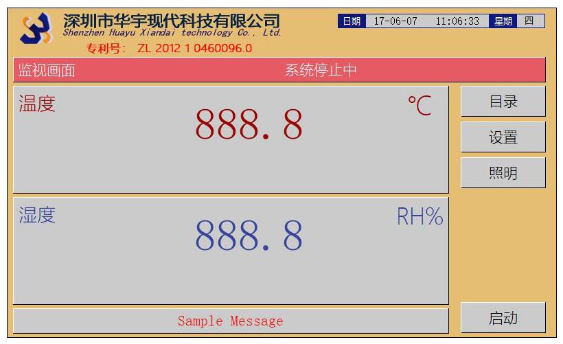 監(jiān)視畫面:主要顯示當前箱體的溫度以及濕度。