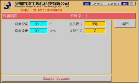 【濕度設定】:設置箱內(nèi)濕度值。系統(tǒng)運行后將根據(jù)設置值來控制濕度。