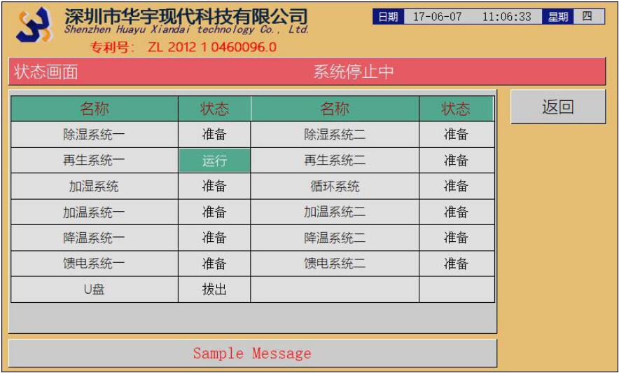 狀態(tài)畫面:當前系統(tǒng)運行的狀態(tài)一覽表