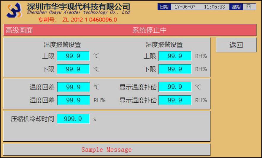 高級畫面:設置系統(tǒng)的高級參數(shù)。需要二級密碼進入。