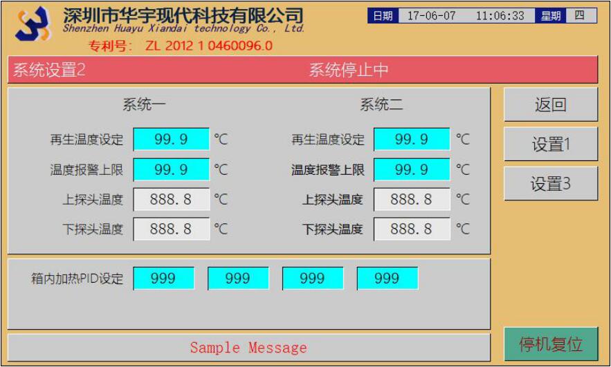 【再生溫度設定】:系統(tǒng)一和系統(tǒng)二再生溫度設定。